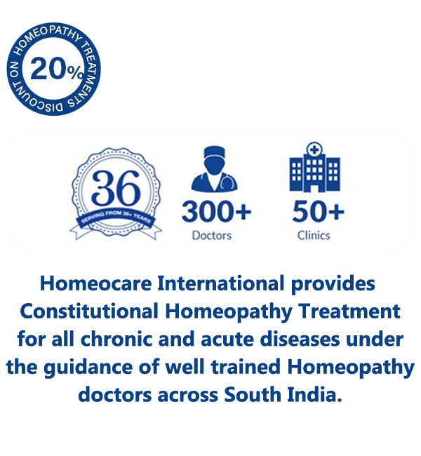 Homeocare International World’s No. 1 Constitutional Homeopathy Brand has been providing constitutional homeopathy treatment for more than 100 plus diseases for the past 36+ years. Now Avail 30% discount on Homeopathy Treatments at Homeocare International.